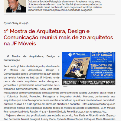 05 de agosto de2015 1ª Mostra de Arquitetura, Design e Comunicação reunirá mais de 20 arquitetos na JF Móveis