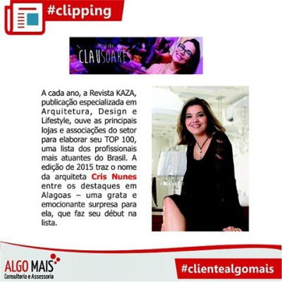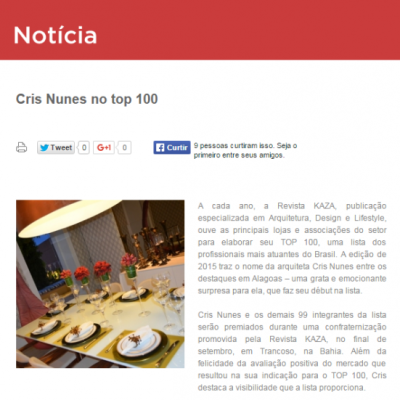 08 de setembro de2015 A edição de 2015 traz o nome da arquiteta Cris Nunes entre os destaques em Alagoas – uma grata e emocionante surpresa para ela, que faz seu début na lista.